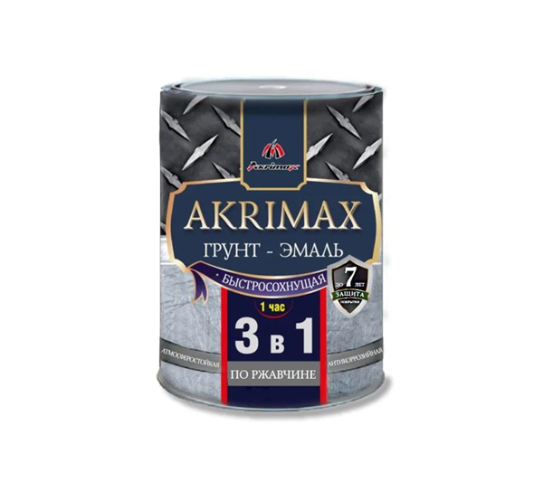 Быстросохнущая грунт-эмаль по ржавчине 3 в 1 серая 0,8 кг AKRIMAX