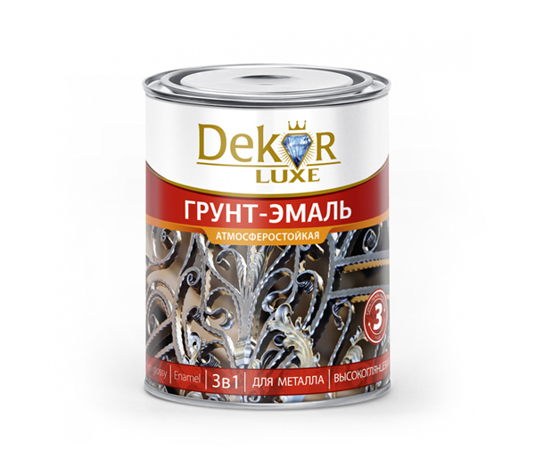 Грунт-эмаль по ржавчине 3 в 1 серая 0,9 кг DEKOR LUXE